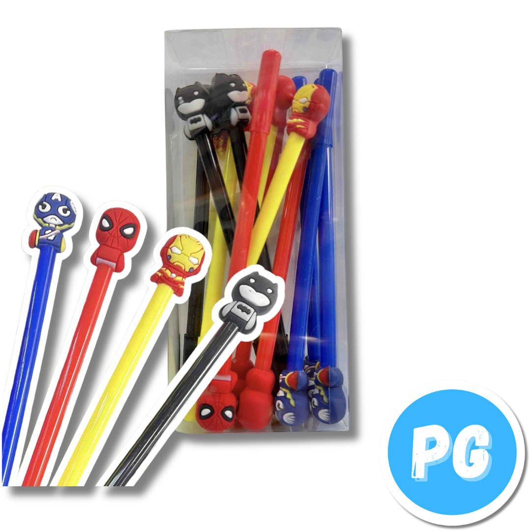 Caja Esfero Muñecos x12 Unds Tapa Negro Super Heroes Surtido