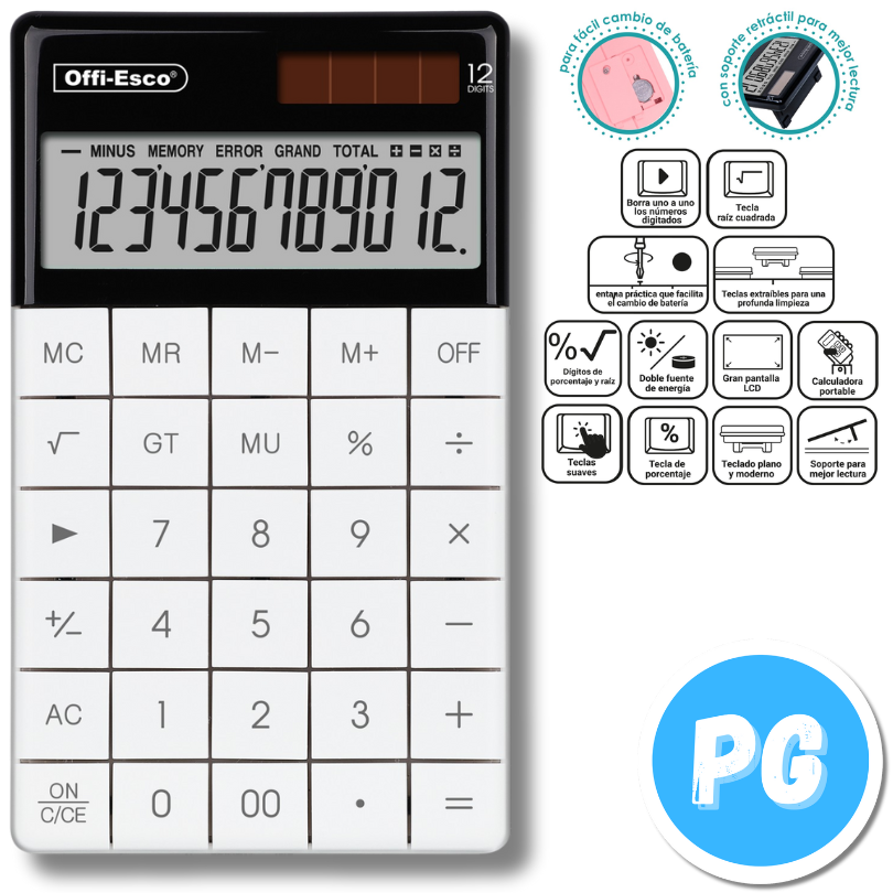 Calculadora Offiesco 12 Digitos De Escritorio Mediana Con Panel Solar 071 Blanca 17x10 Centimetros