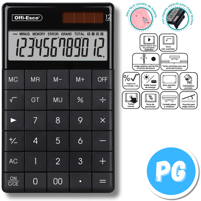 Calculadora Offiesco 12 Digitos De Escritorio Mediana Con Panel Solar 071 Negra 17x10 Centimetros